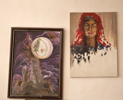 Rahraw states. “Women have lots of things to say.” We were greatly moved by the power of these young women’s visual voices. They do not have their own gallery and have shown in a number of places in Kabul including a newly build caravanserai in Barbur’s Gardens that was built following the plan of a much earlier building.. They also held an exhibition of heir work in the destroyed shell of one of the popular cinema’s. I have often driven and walked by this building intrigued by the circular stair and the elegance of what this represented in the lives of the residents of Kabul who loved the cinema. CCAA would love to turn this into a gallery. Once again I wish I had unlimited resources so I could wave a wand and say, “It is so.” Art can be an amazing opening for expression of things that are often unsaid that need a voice particularly for these young women.