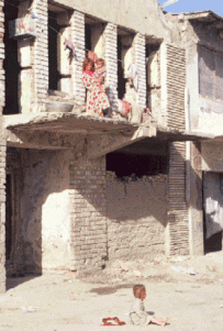 As we walked the streets we saw many houses marked by war serving as shelter for large family groups. This young girl was caring for a younger sibling as a little boy cried on the street. Girls in poor families are often at home taking care of the younger children while the boys are free to roam the city.