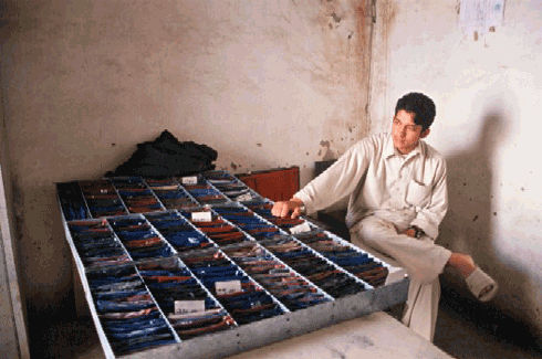 Average strengths of glass prescriptions are brought from Kabul to be sold to patients during an eye camp.