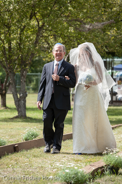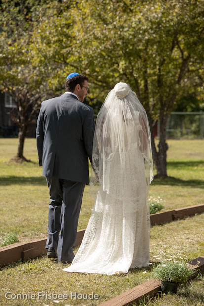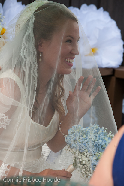 Some of you may know that one of my joys is very fine sewing…what I did for fun as I grew up. It also has been a strong connection with the female line of my family. I was taught by my mother at age 5 who learned from her mother. I had always wanted to pass the knowledge on to my own daughter. Not having a daughter to do this with I did the next best thing…I taught some of the daughters of my close friends. Sarah was one. About this time last year she asked if I would remake her Grandmother’s wedding dress that also had been remade for one of her Aunts. The “task” was completed Wednesday, August 29, 2012, and the beautiful wedding took place yesterday September 2. Here are some of the photographs featuring the happy bride in the dress. I am so honored and grateful that Sarah gave me this opportunity.